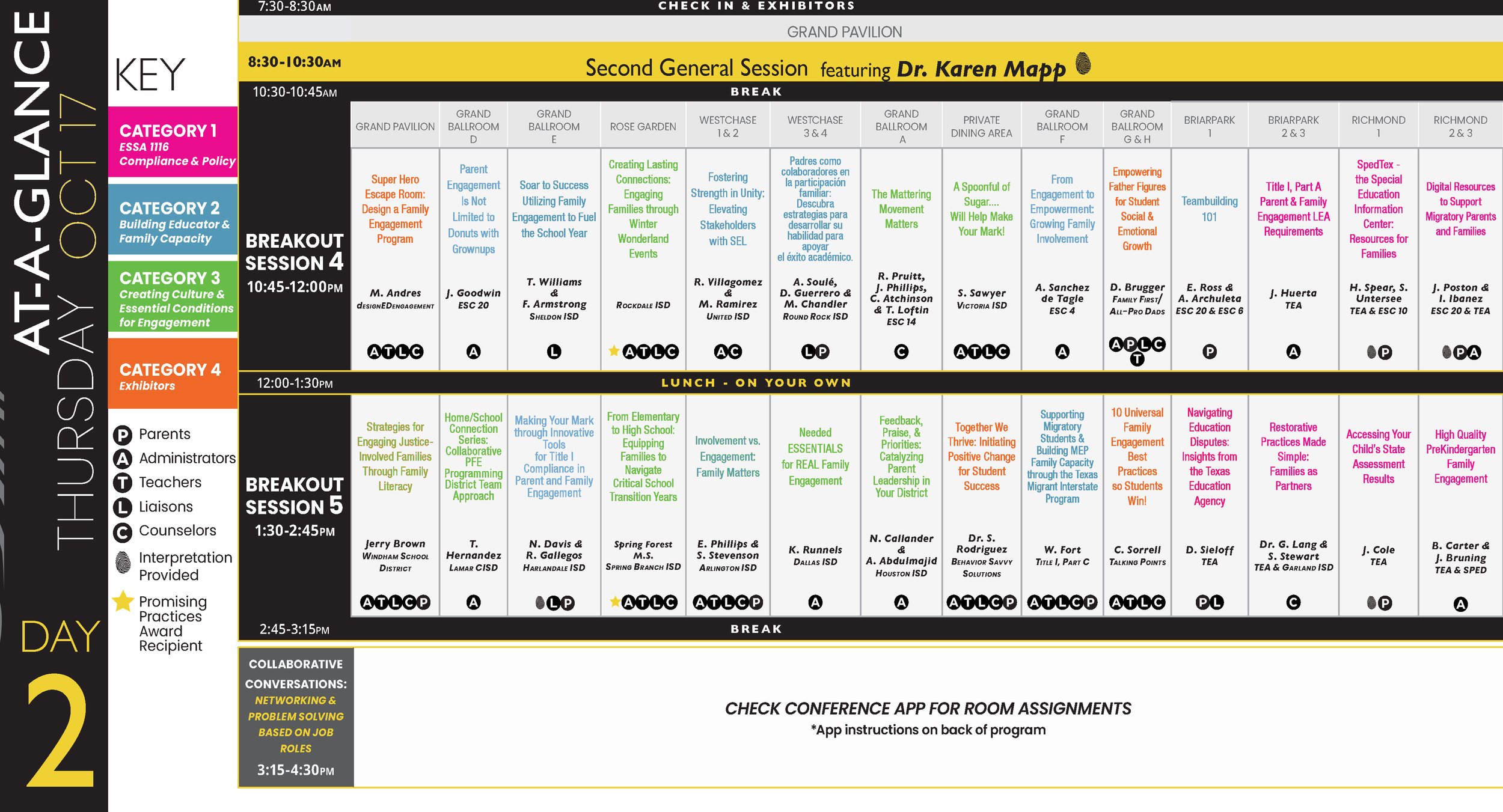 This annual event features keynote speakers, breakout sessions, workshops, and networking opportunities that bring together parents, families, educators, and community members from across Texas to learn about and share best practices for engaging parents and families in their children's education as well as many other Title I, Part A topics such as: